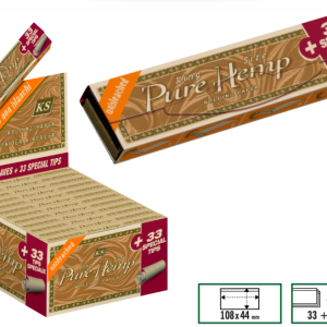 Pure Hemp Unbleached King size 110x44mm +Filter 33leaves+33paper filter/pack 13gram 24packs/box